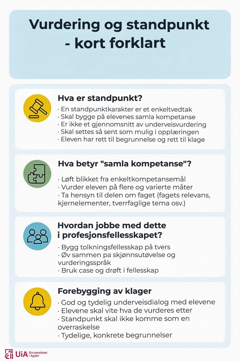 - Utvikle felles forståelse av regelverket for standpunktvurdering